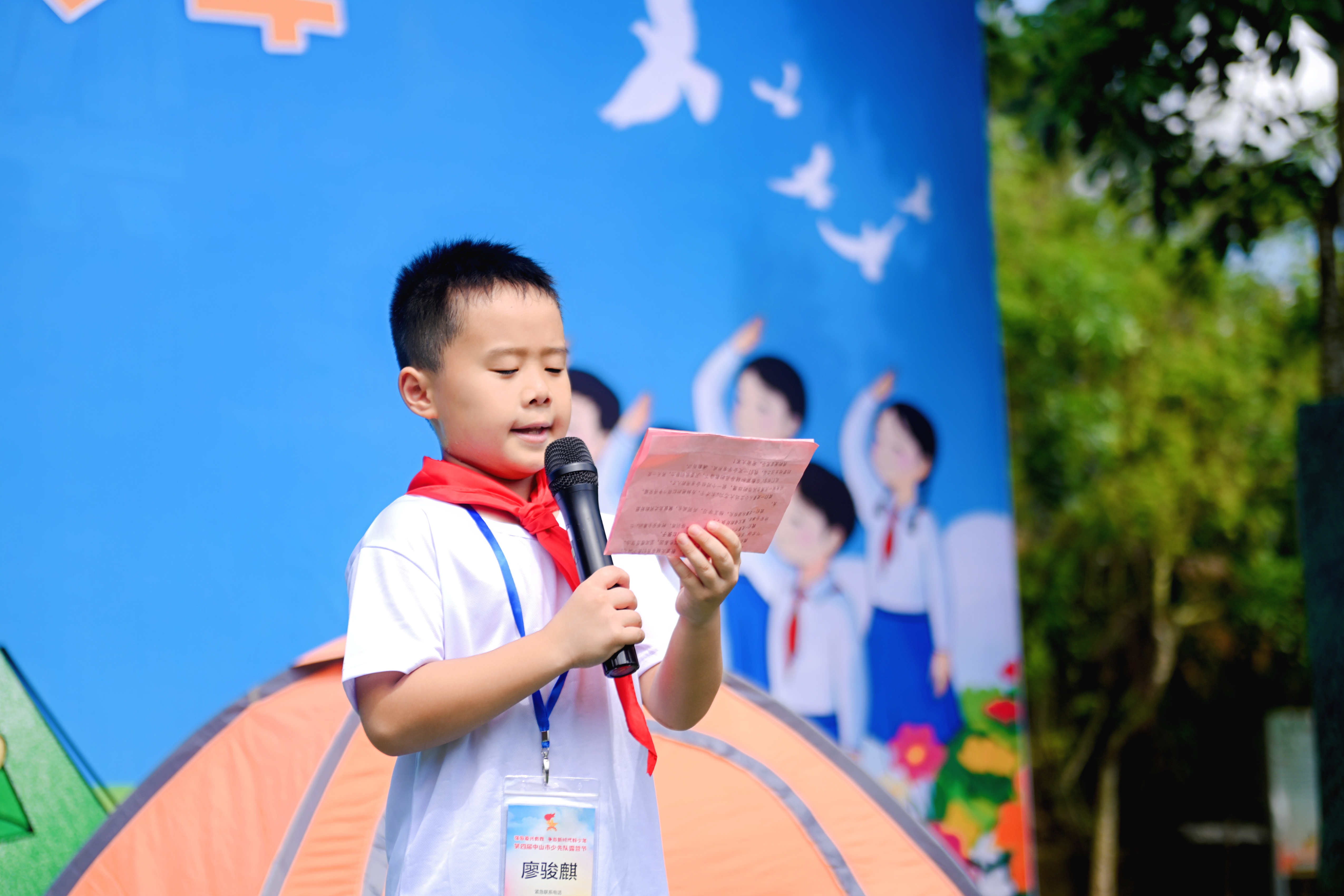 开营仪式上,主办方与少先队员代表放飞气球,共同开启本次露营节活动。来自中山市石岐体育路学校的廖骏麒同学作代表发言,表示将珍惜此次难得的学习实践机会,在活动中勤奋学习、团结协作、增长本领,努力成长为有理想、有本领、有担当的时代新人。