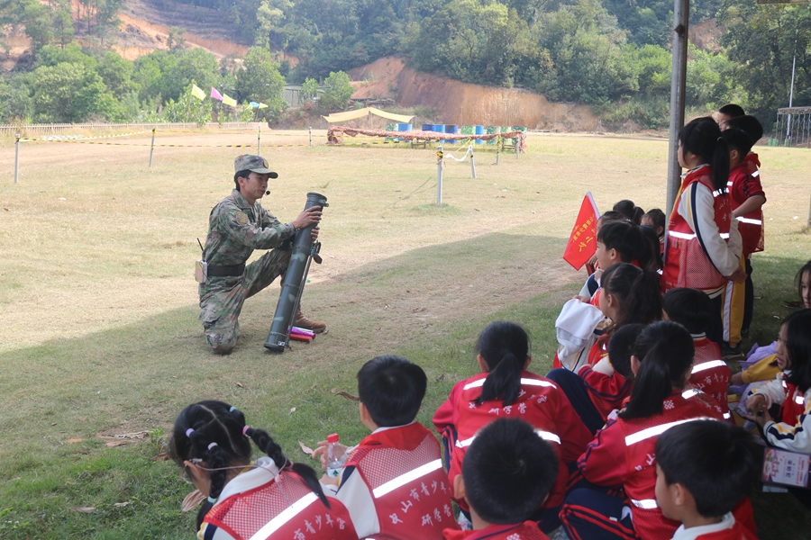 最令人热血沸腾的当属实战体验环节!CS枪战中,营员们分组对抗,制定战术、灵活走位,在紧张刺激的“战斗”中培养了团队协作与战略思维;射箭场上,大家屏气凝神,瞄准靶心,感受百步穿杨的专注与精准;火箭筒射击项目更是让营员们直呼过瘾,亲身感受武器装备的威力,激发了强烈的爱国情怀。当营员们乘坐上装甲车,厚重的装甲、轰鸣的引擎让他们直观感受到国防力量的强大,心中的自豪感油然而生。活动还邀请曾先后参加1979年2月对越自卫还击战和1981年广西收复法卡山作战,荣立二次三等战功朱长恩爷爷为营员们讲战斗故事。