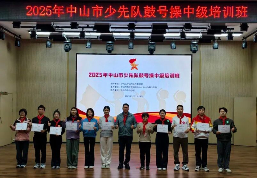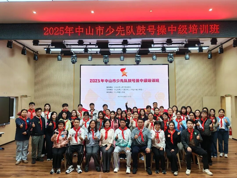 12月13-14日由市少工委指导、中心(宫)少工委主办、中山市香山小学协办的2025年中山市少先队鼓号操培训中级班在香山小学顺利举办,全市各学校少先队辅导员、负责少先队鼓号队的教师共45人参加培训。本次培训班是继2024年基础培训的“进阶提升”,邀请了两名广东省少先队鼓号教练员进行授课,将聚焦在2025年鼓号新谱与队列操这两大核心内容学习,旨在推动中山市少先队鼓号队师资 从“合格”迈向“优秀”。