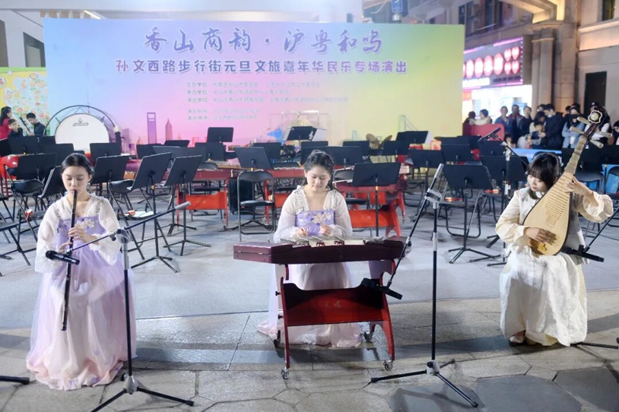 2025年12月31日至2026年1月3日,孙文西路步行街游人如织,民乐悠扬、武姿飒爽、乐章跃动,为这条百年老街增添了浓厚的文化年味。由共青团中山市委员会、少先队中山市工作委员会主办,中山市青少年活动中心(青少年宫)〔以下简称“市青少年宫”〕承办的“丝竹和鸣 武动香山”中山市青少年弘扬优秀传统文化交流展示活动在此举行,民乐、弦乐及武术、青年电声乐队、流行音乐等5场演出轮番上演,为逾20万市民游客带来兼具传统韵味与青春活力的文化盛宴。