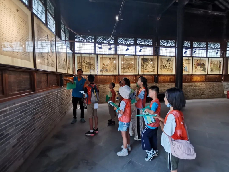 在南区詹园孝亲馆,营员们听着研学老师动情地讲解“啮指痛心”、“恣蚊饱血”等二十四孝故事,寓意着“马上封侯”、“高人一等”的栓马桩、“一步一清廉”的石板路,还有处处展现的苏州园林风光,都让营员们流连忘返。