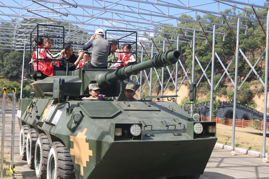 最令人热血沸腾的当属实战体验环节!CS枪战中,营员们分组对抗,制定战术、灵活走位,在紧张刺激的“战斗”中培养了团队协作与战略思维;射箭场上,大家屏气凝神,瞄准靶心,感受百步穿杨的专注与精准;火箭筒射击项目更是让营员们直呼过瘾,亲身感受武器装备的威力,激发了强烈的爱国情怀。当营员们乘坐上装甲车,厚重的装甲、轰鸣的引擎让他们直观感受到国防力量的强大,心中的自豪感油然而生。活动还邀请曾先后参加1979年2月对越自卫还击战和1981年广西收复法卡山作战,荣立二次三等战功朱长恩爷爷为营员们讲战斗故事。